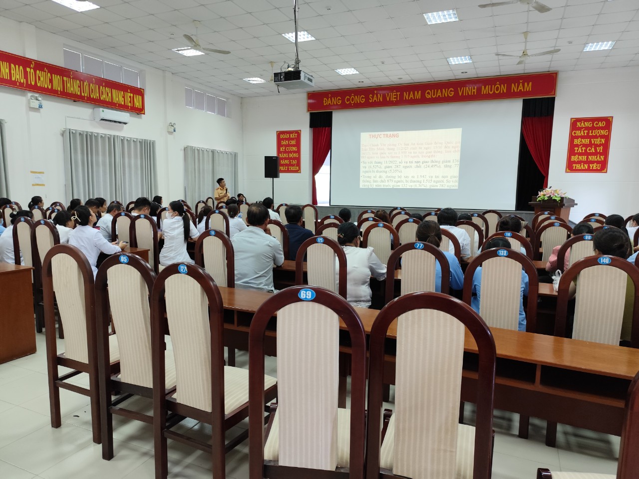 Sáng ngày 18/06/2024, TTYT huyện Long Điền phối hợp cùng Đội CSGT Công an huyện Long Điền tổ chức lớp tập huấn, tuyên truyền về Luật Giao thông đường bộ cho đội ngũ viên chức, người lao động đang công tác tại Trung tâm Y tế huyện Long Điền.