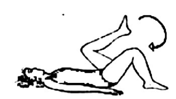 Co hai chân, đan hai tay kéo sát hai gối về hướng ngực, đồng thời hít vào. Duỗi thẳng hai chân về vị trí ban đầu, đồng thời thở ra.