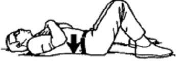 Hai tay đan sau gáy hoặc đặt dọc theo thân mình. Nghiêng hai chân sang cùng mộtbên, càng gần mặt giường càng tốt đồng thời hít vào. Sau đó trở về vị thế ban đầu, đồng thời thở ra. Đổi bên và thực hiện như trên.