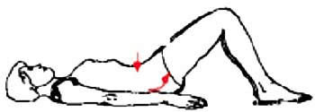Hai tay đan sau gáy hoặc đặt dọc theo thân mình. Ấn lưng sát mặt giường, nhấc mông lên khỏi mặt giường, đồng thời thở ra. Sau đó ưỡn lưng lên khỏi mặt giường và ấn mông sát mặt giường, đồng thời hít vào. Động tác này thực hiện luân phiên, không giữ lại.