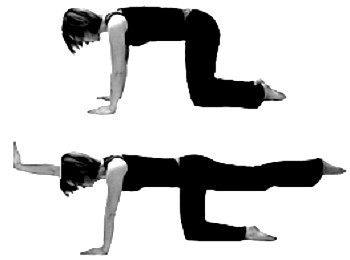 Tay phải đưa thẳng về phía trước và hướng lên trần nhà. Chân trái duỗi thẳng ra sau và hướng lên trần, mắt nhìn theo tay, đồng thời hít vào. Hạ tay và chân xuống về tư thế ban đầu, đồng thời thở ra. Tiếp tục đổi bên và thực hiện như trên.