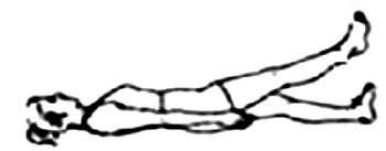 Hai tay đan sau gáy hoặc đặt dọc theo thân mình. Lưng giữ sát mặt giường.