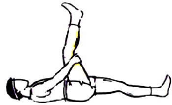 Nằm ngửa trên giường (hoặc sàn), một chân duỗi thẳng, ngóc bàn chân lên và ấn gan chân xuống mặt giường. Chân còn lại co gối, đan hai tay kéo sát gối về hướng ngực, đồng thời hít vào. Sau đó duỗi thẳng chân trở về tư thế ban đầu, đồng thời thở ra. Đổi chân và thực hiện thêm một lần như trên.