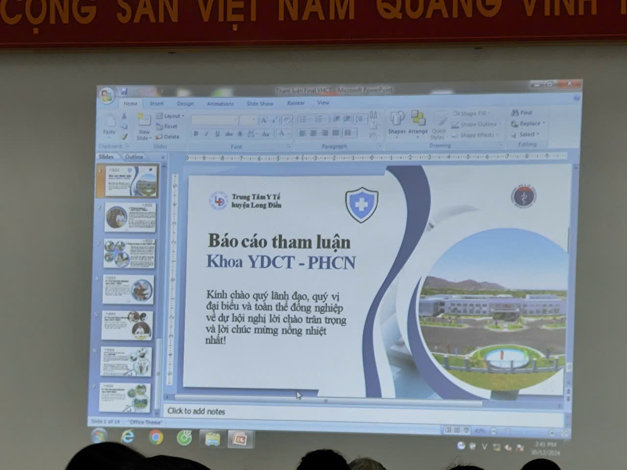 Tại hội nghị, đại diện Khoa YDCT-PHCN trình bày báo cáo tham luận:  báo cáo công tác khám chữa bệnh năm 2024, nêu những khó khăn vướng mắc trong việc thực hiện và đề ra các biện pháp thực hiện trong năm 2025; Khoa KSBT trình bày: báo cáo nhận định về công tác tiêm chủng mở rộng, khó khăn tồn tại và giải pháp thực hiện năm 2025. TYT Thị trấn Long Điền trình bày báo cáo tham luận :Về hoạt động khám chữa bệnh và thực hiện các chương trình y tế tại địa phương, những vướng mắc, khó khăn tồn tại và biện pháp khắc phục trong thời gian tới.